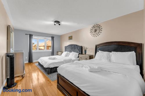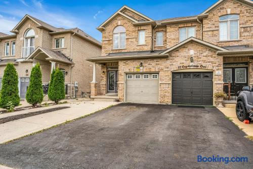 Stay in this spacious 3BR, 2.5-bath Brampton home for up to 8 guests. With a bright layout and clean finishes, it’s minutes from Gage Park, shops, dining, worship places, and transit. Perfect for families or groups, this home offers comfort and convenience for both short visits and longer stays.