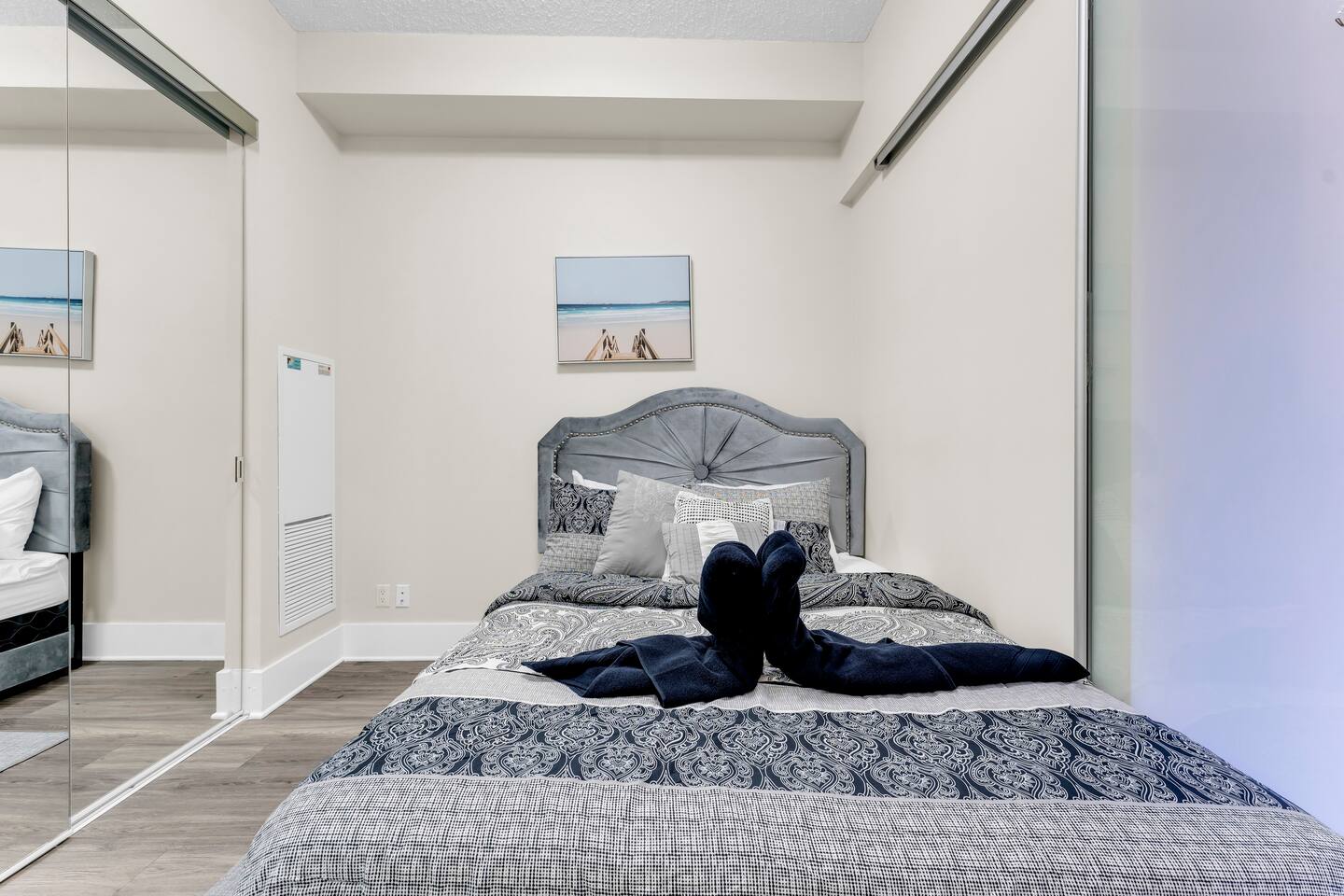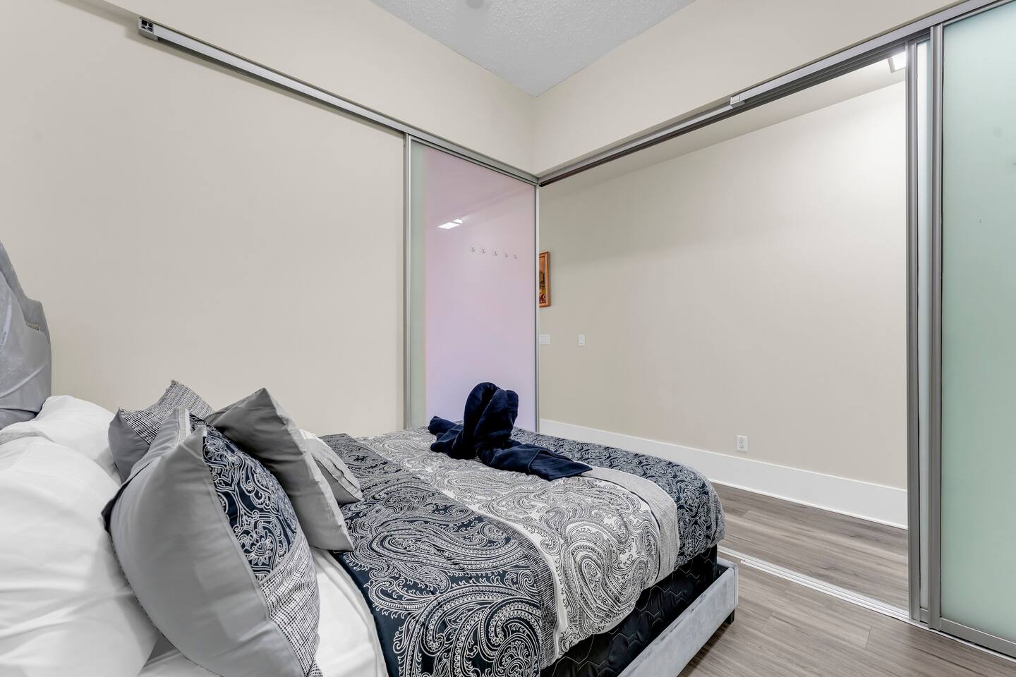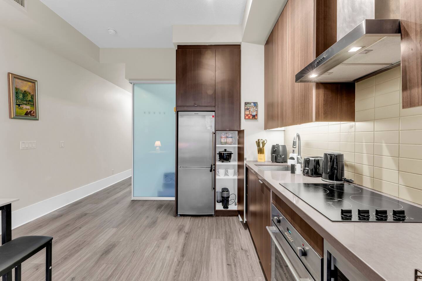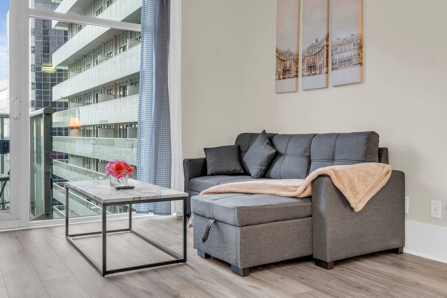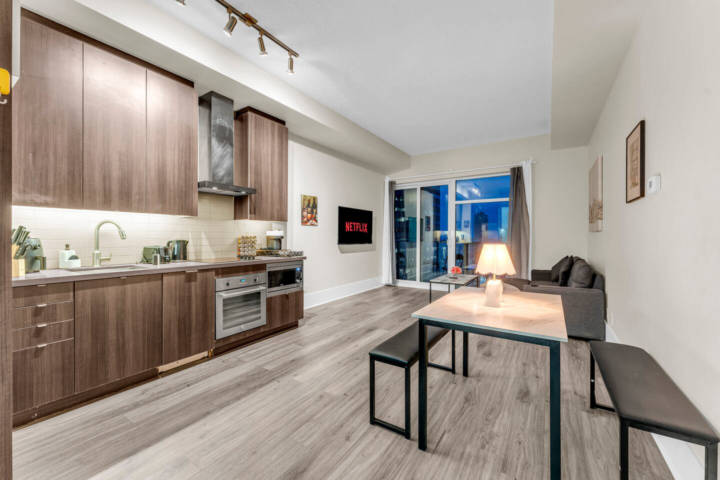 Stay in the heart of Toronto in this modern, upscale condo—perfect for couples, solo travelers, or small groups. Ideal for 2 guests but comfortably accommodates up to 4. ✔ 1 Bedroom with a Queen Bed ✔ Double Sofa Bed in Living Room ✔ Fully Equipped Kitchen & Dining Area ✔ 10 ft Ceilings & Fast Elevators ✔ High-Speed Wi-Fi & 40" HDTV ✔ Access to Building Gym & Pool