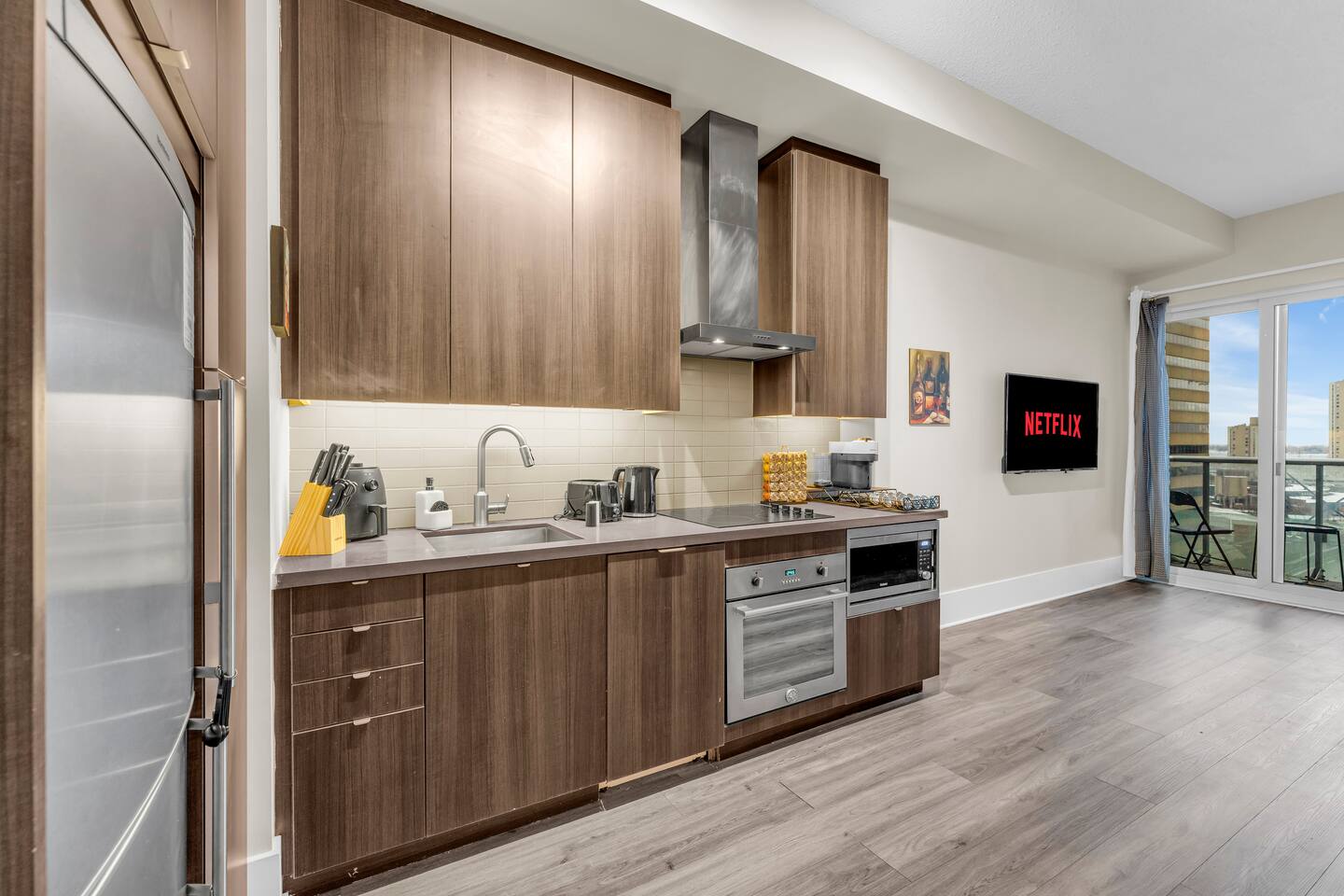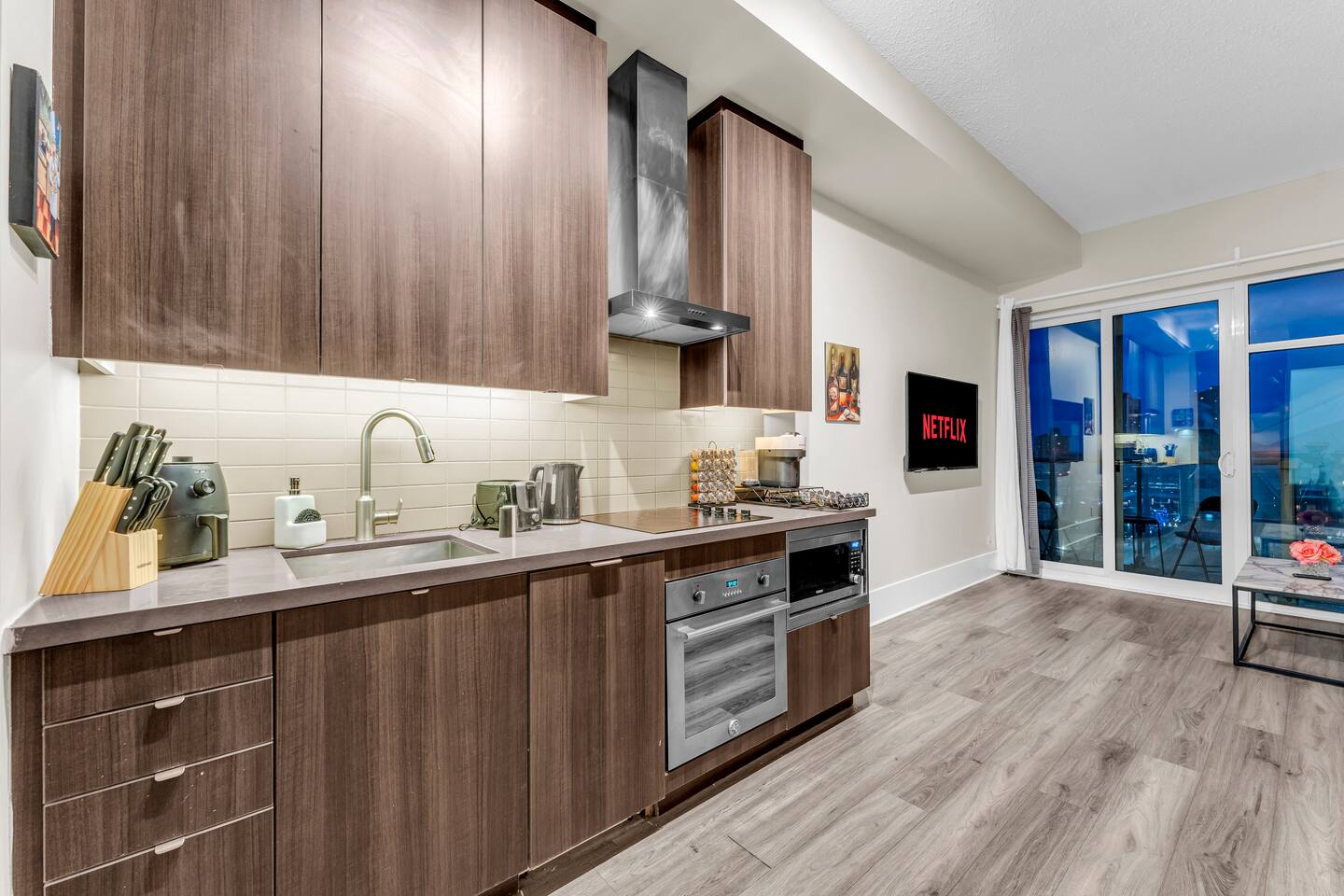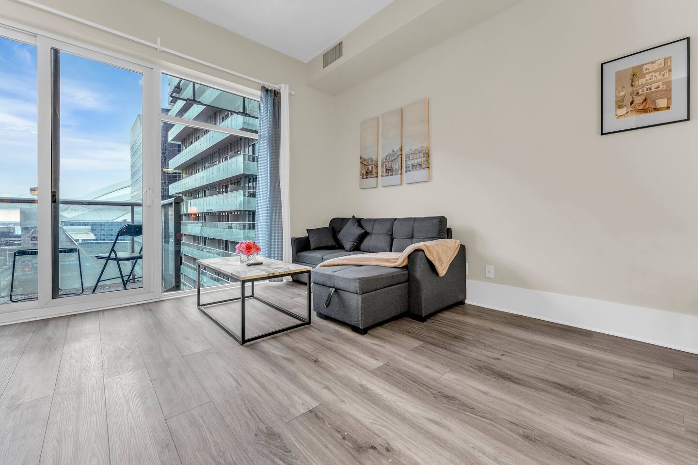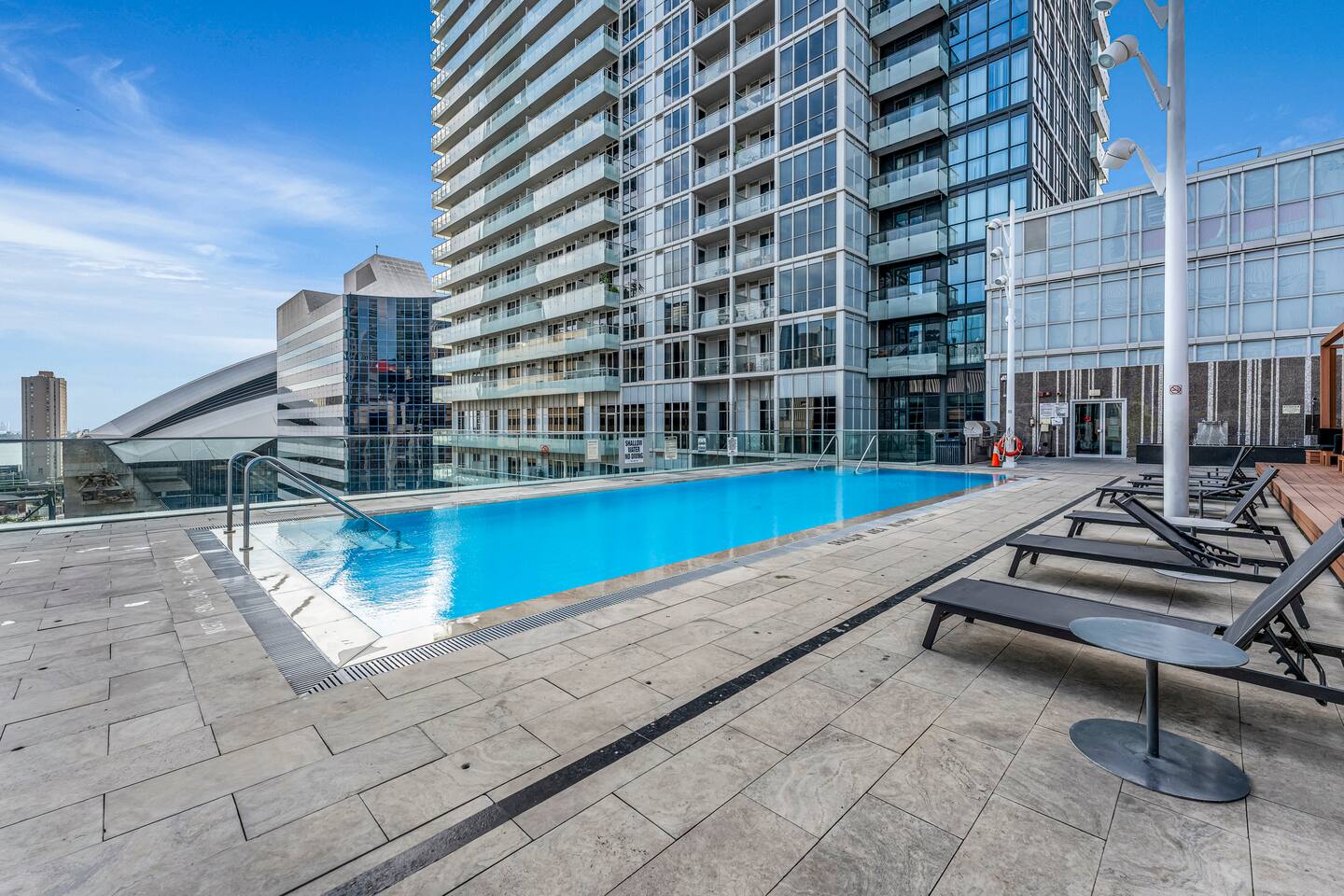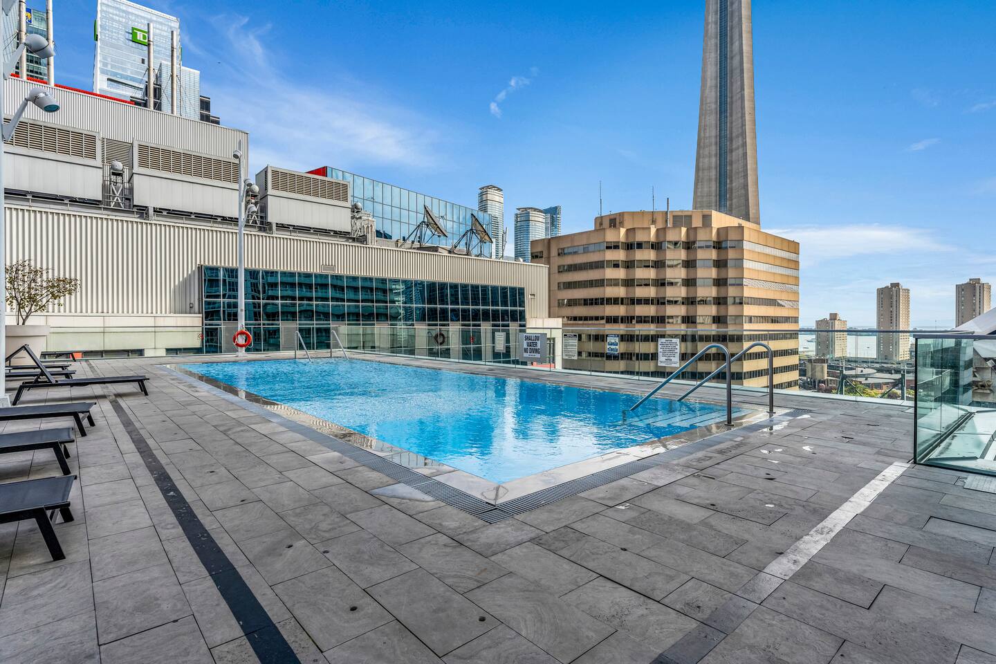 Walk times; CN Tower - 1 min. Rogers Centre - 2 mins Aquarium - 3 mins Convention Centre - 4 mins Union Station - 8 mins Scotiabank Arena - 8 mins Toronto island ferry - 10 mins.